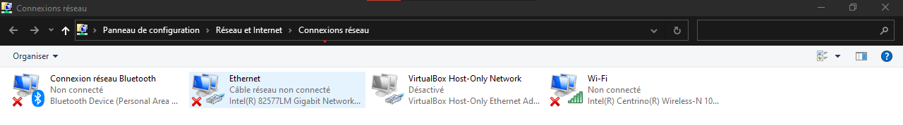 Dans le panneau de configuration, il faut aller dans Réseau et Internet / Connexions réseau
