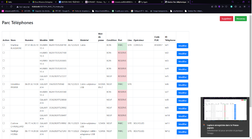 En conclusion, cette transition vers une gestion optimisée du parc téléphonique a considérablement amélioré l'efficacité opérationnelle et la fiabilité des informations au sein de l'entreprise. La combinaison d'une base de données bien structurée et d'une interface utilisateur conviviale contribue à un suivi plus efficace des téléphones portables.