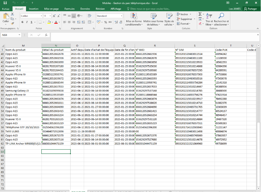 Le fichier Excel utilisé précédemment était une compilation d'extractions depuis l'interface Web des opérateurs téléphoniques. Avec le temps, il est devenu complexe et désordonné, rendant la gestion du parc téléphonique moins efficace. Les changements fréquents et l'absence de structure claire ont motivé la recherche d'une solution plus efficiente.